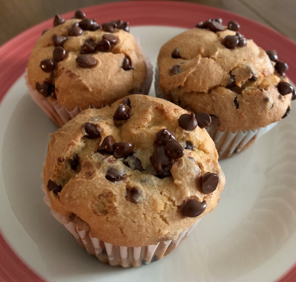 ➋ Stir together water, eggs, oil/butter, and muffin mix until blended. Gently fold the drained blueberries or chocolate chips into batter.
