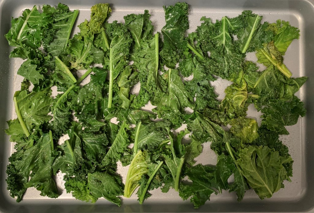 ➍ Bake 10 to 15 minutes, or until the kale edges are brown, but are not burnt. Enjoy!