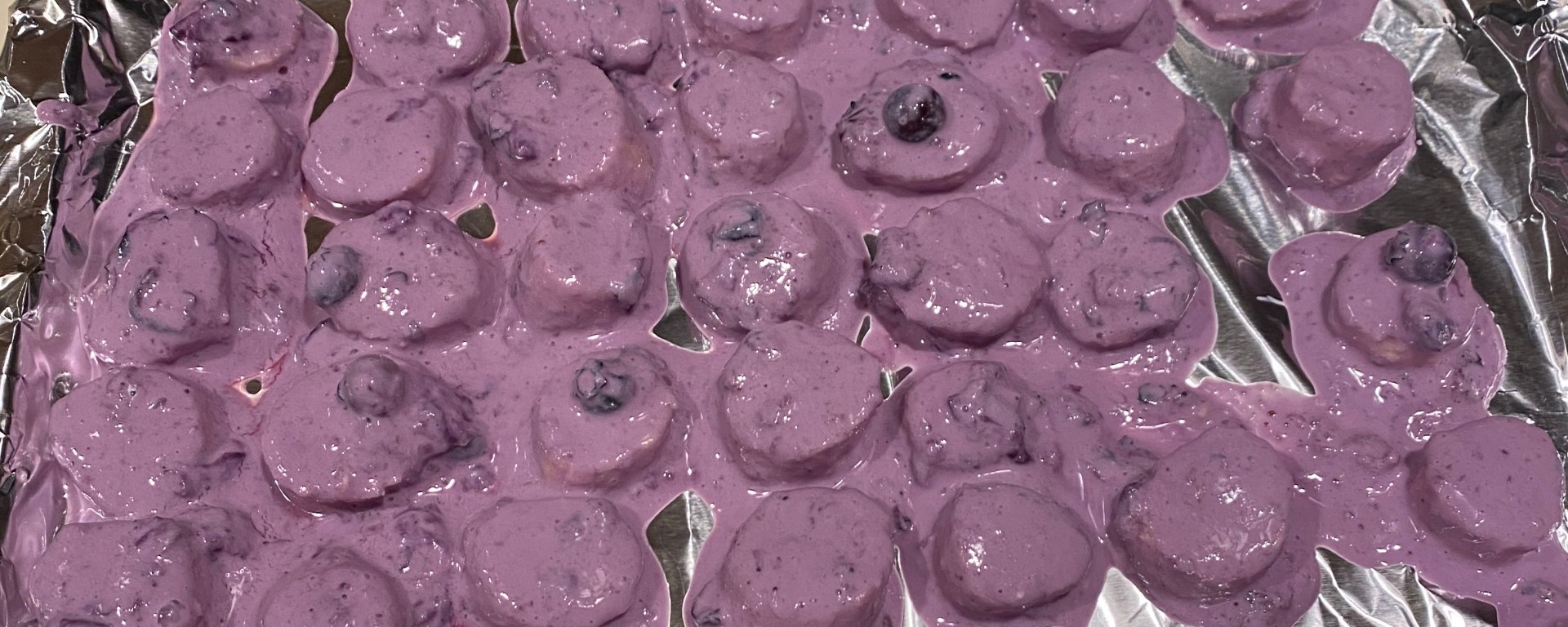 ➋ Heat up (microwave is easiest) and mash blueberries in a large bowl.